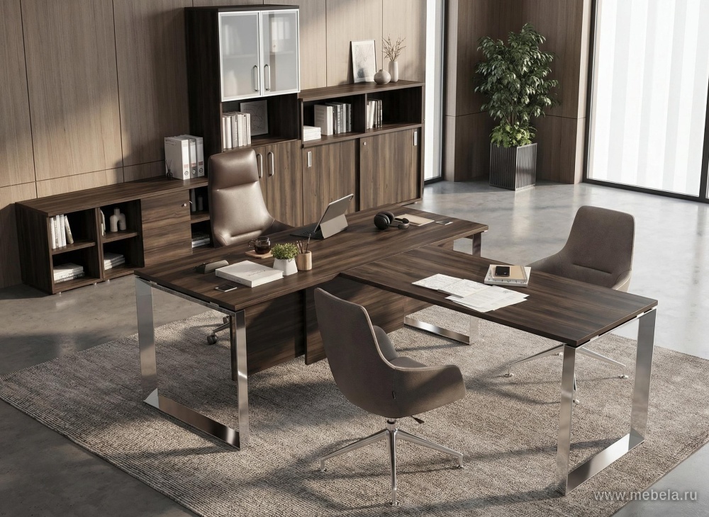 Кабинет руководителя Оникс Люкс Мали в изысканном цвете «дуб мали». Этот стильный и функциональный элемент интерьера станет идеальным местом для продуктивной работы и демонстрации статуса вашего лидера. Продукция российского производства соответствует высоким стандартам качества и экологичности.